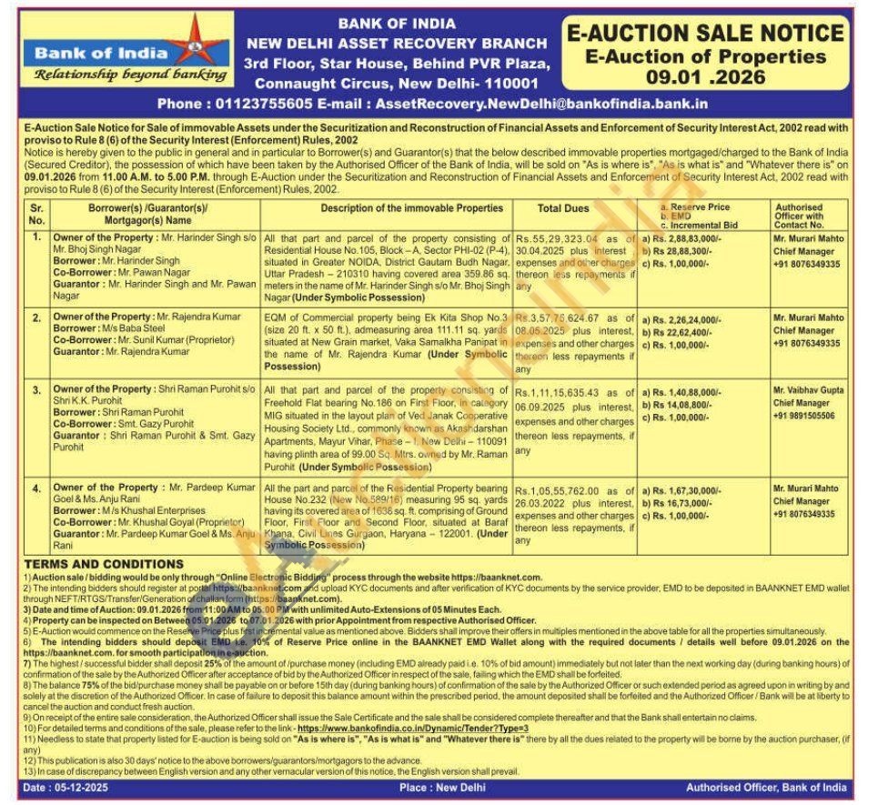 All that part and parcel of the property consisting of Residential House No. 105, Block-A, Sector PHI-02 (P-4), situated in Greater NOIDA, District Gautam Budh Nagar, Uttar Pradesh-210310 having covered area 359 86 sq. meters in the name of Mr. Harinder Singh s/o Mr. Bhoj Singh Nagar (Under Symbolic Possession)