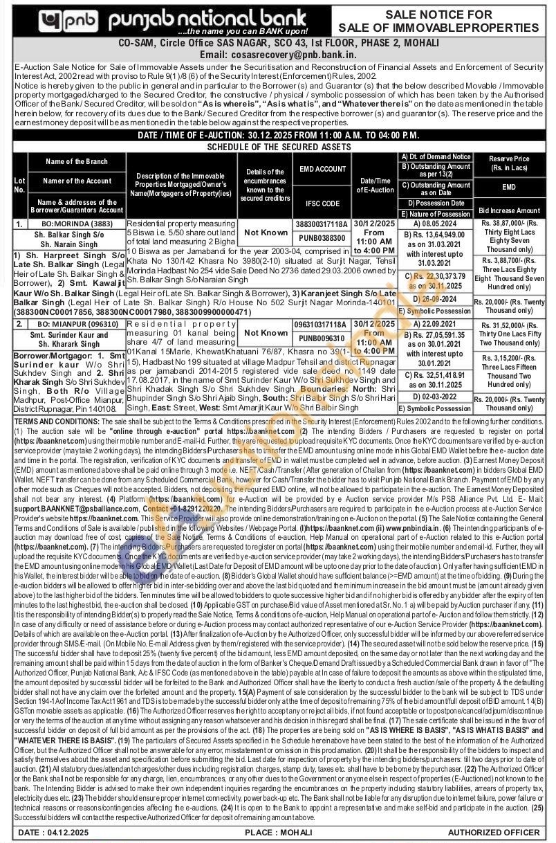 Residential property measuring 01 kanal being share 4/7 of land measuring 01Kanal 15Marle, Khewat/Khatuani 76/87, Khasra no 39(1-15), Hadbast No 199 situated at village Madpur Tehsil and district Rupnagar as per jamabandi 2014-2015 registered vide sale deed no 1149 date 17.08.2017, in the name of Smt Surinder Kaur W/o Shri Sukhdev Singh and Shri Khadak Singh S/o Shri Sukhdev Singh. Boundaries: North: Shri Bhupinder Singh S/o Shri Ajaib Singh, South: Shri Balbir Singh S/o Shri Hari Singh, East: Street, West: Smt Amarjit Kaur W/o Shri Balbir Singh