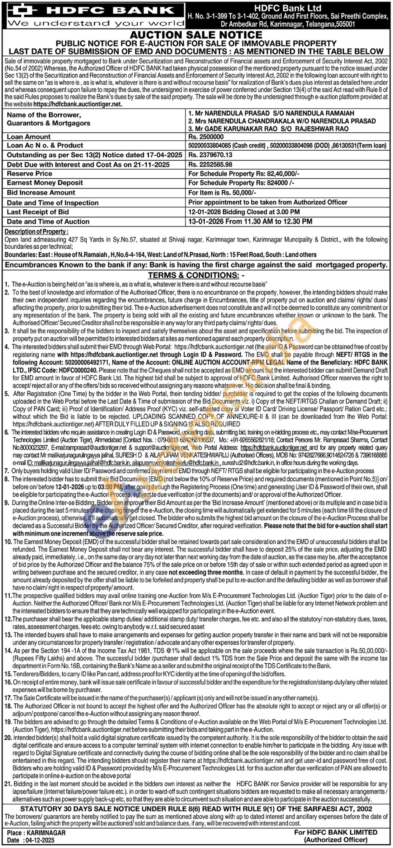 SURESH D / AILAPURAM VENKATESHWARLU (Authorised Officers) Mobile No: 9742627666 / 9014624726 / 7396168885