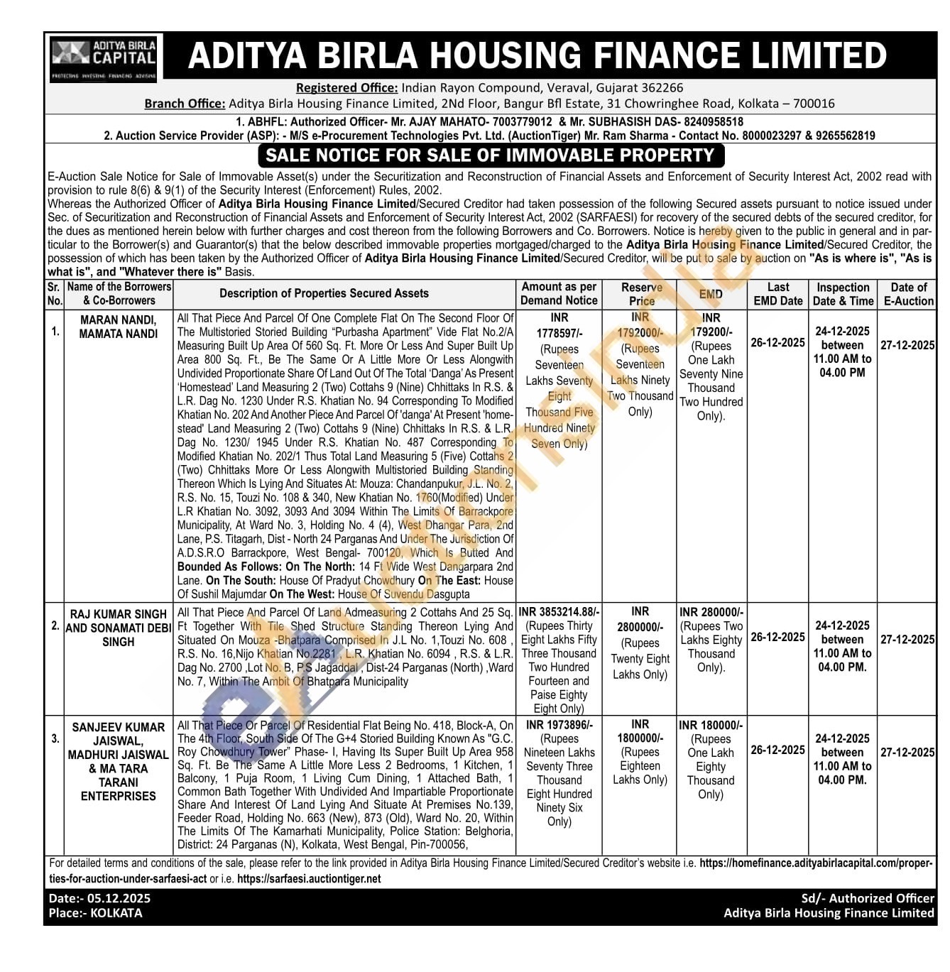 Mr. AJAY MAHATO : 7003779012 & Mr. SUBHASISH DAS : 8240958518