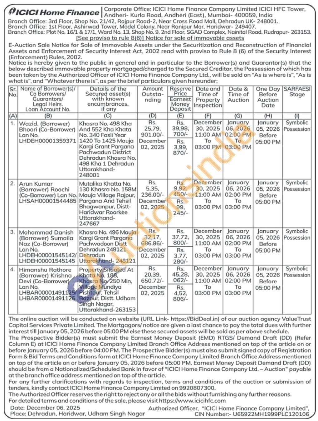 4) Property Situated At Khata No. 188, Khasra No. 250 Min, Village Mundiya Pishtaur, Tehsil Bazpur, Distt. Udham Singh Nagar, Uttarakhand-263153