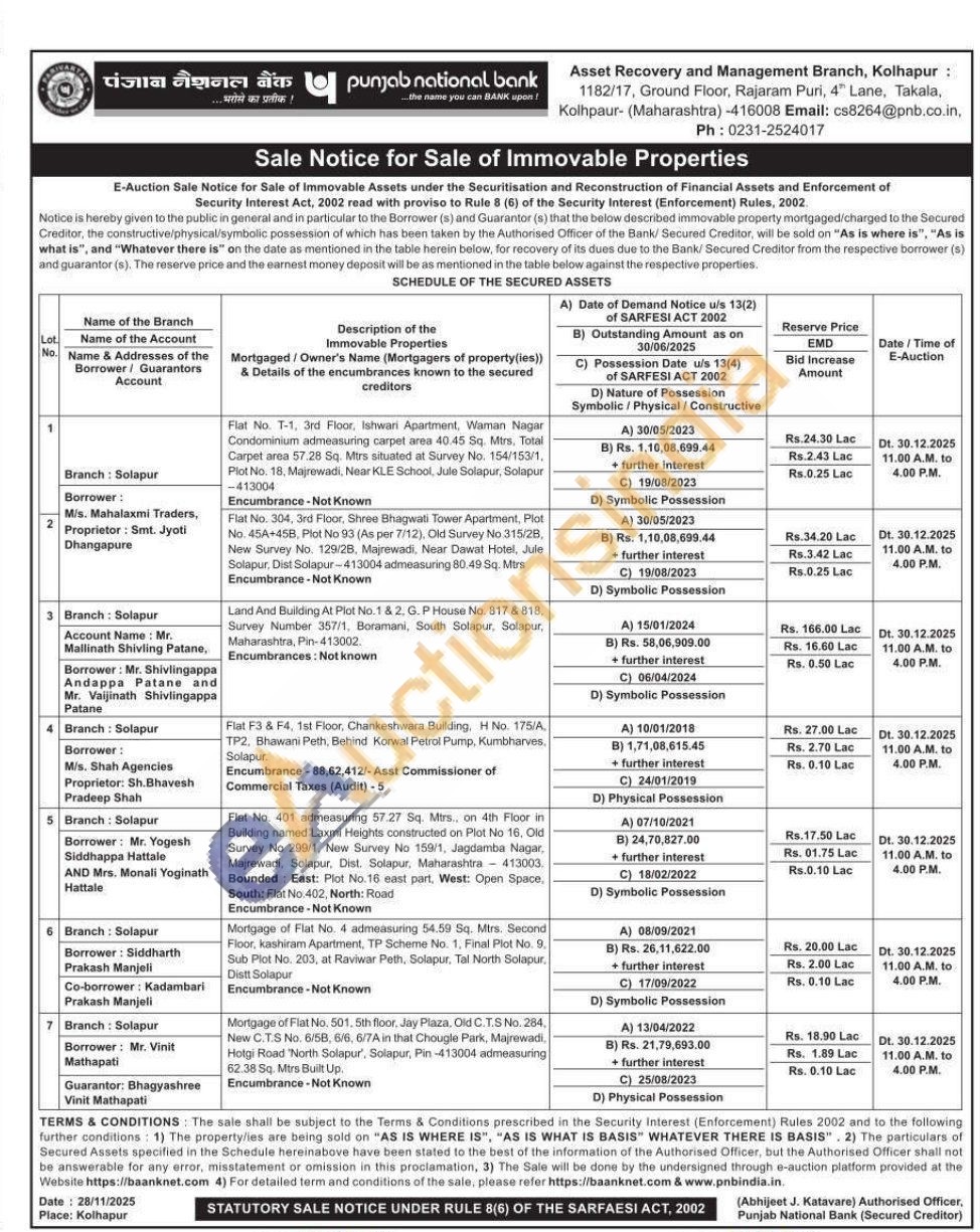 Flat No. 304, 3rd Floor, Shree Bhagwati Tower Apartment, Plot No. 45A+45B, Plot No 93 (As per 7/12), Old Survey No 315/28, New Survey No 129/2B, Majrewadi, Near Dawat Hotel, Jule Solapur, Dist Solapur-413004 admeasuring 80.49 Sq. Mirs