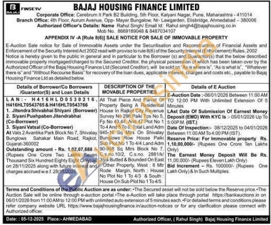 All That Piece And Parcel Of Property Being A Residential House In Rajkot City Revenue Survey No 296 Palki Tps No 5. Fp No 43,44, And 47 Plot No 1 To 4 And 5 To 8, Total Land Adm 945-16 Sq Mirs On Shivalay , Bunglows Row House Paiki Sub Plot No 1 To 4/4 Land Adm 90-958 Sq Mtrs Block No 7 C.s no. 10/2, C.s.no. 2881/k/35/4 Butted & Bounded On East Other Property, West: 6 Mtr Rode Margin, North House No Plot No 1 To 4/3 & South House On Sub Plot No 1 To 4/5
