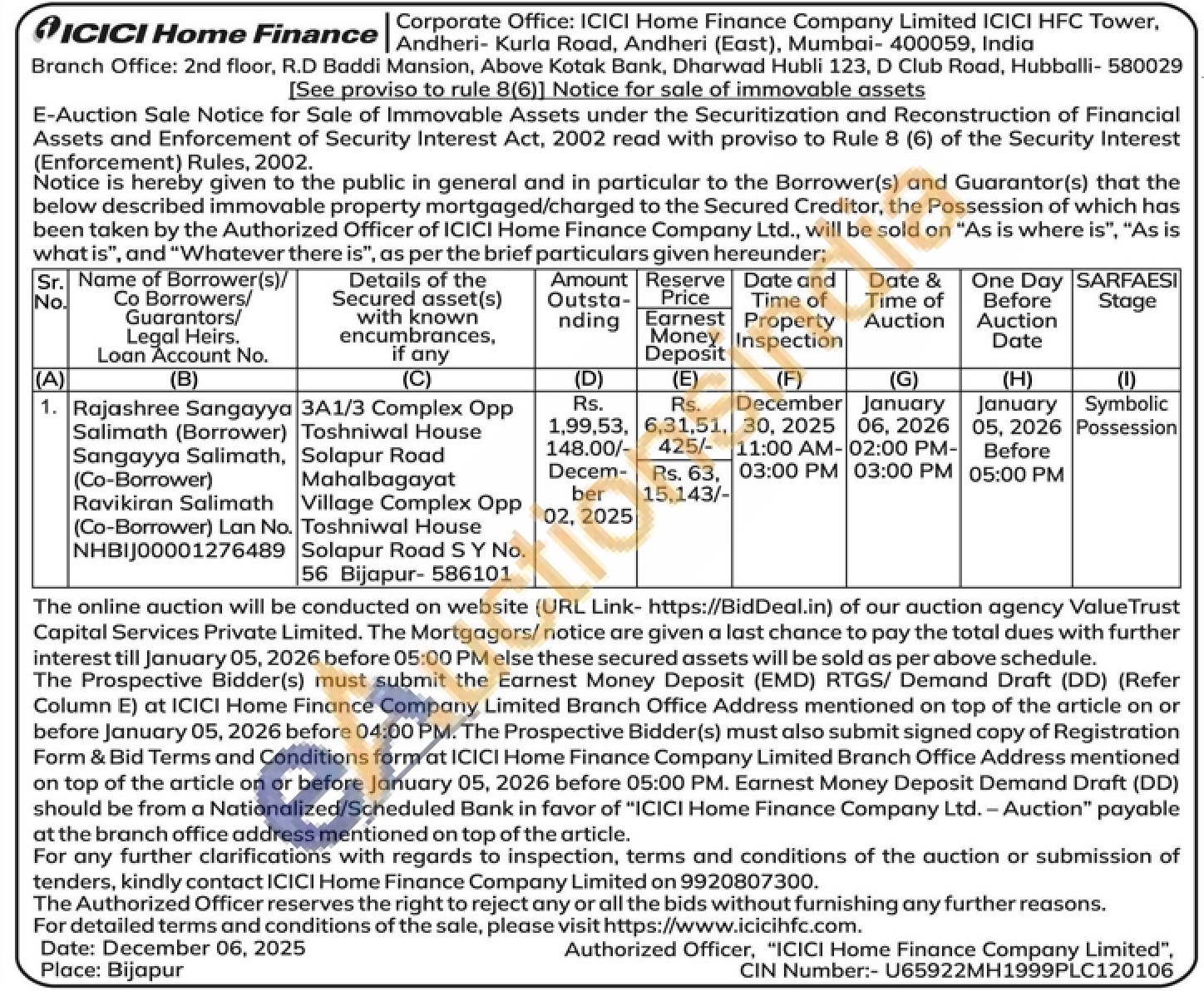 3A1/3 Complex Opp Toshniwal House Solapur Road Mahalbagayat Village Complex Opp Toshniwal House Solapur Road SY No. 56 Bijapur-586101