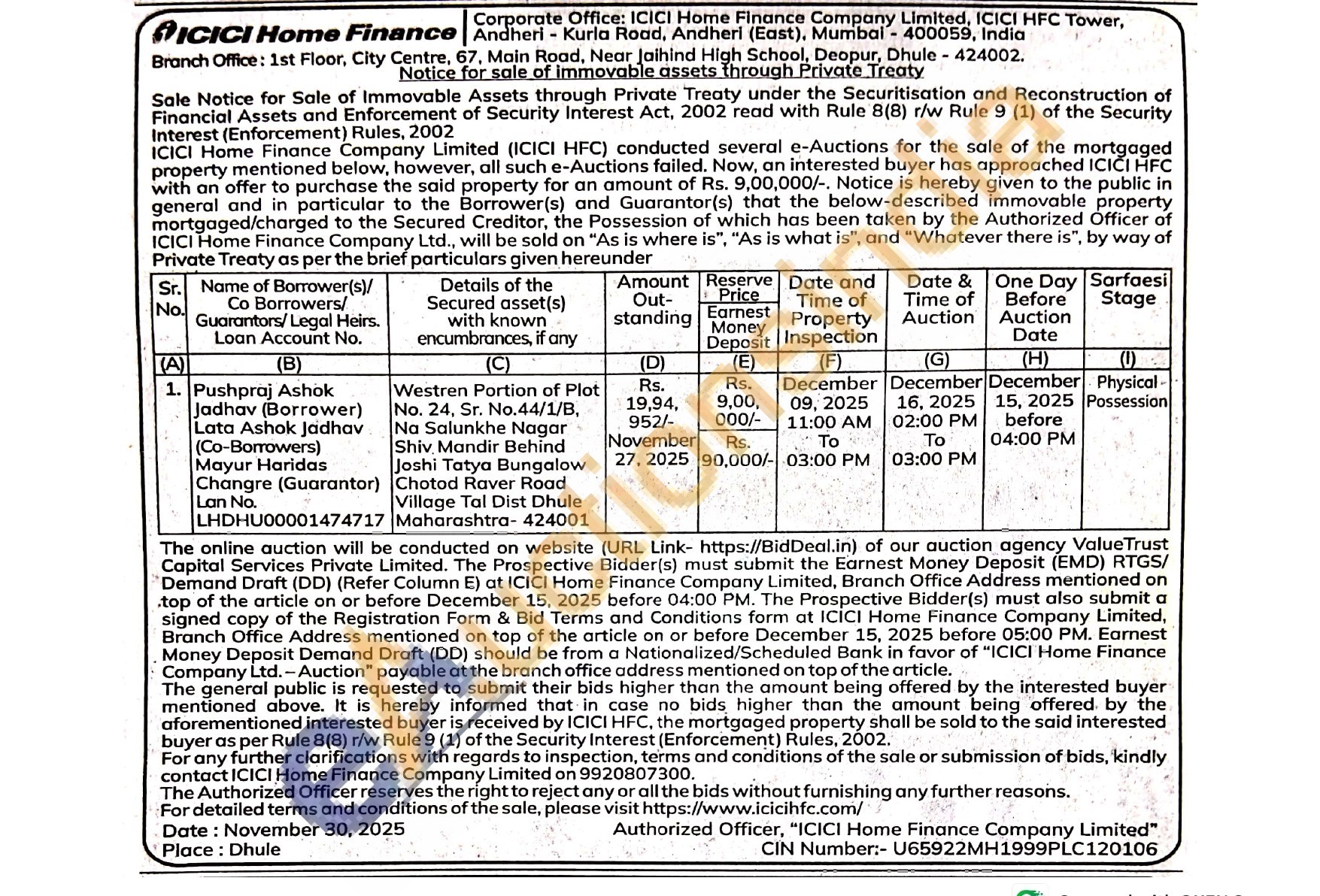 Westren Portion of Plot No. 24, Sr. No.44/1/B, Na Salunkhe Nagar Shiv, Mandir Behind Joshi Tatya Bungalow Chotod Raver Road Village Tal Dist Dhule Maharashtra-424001