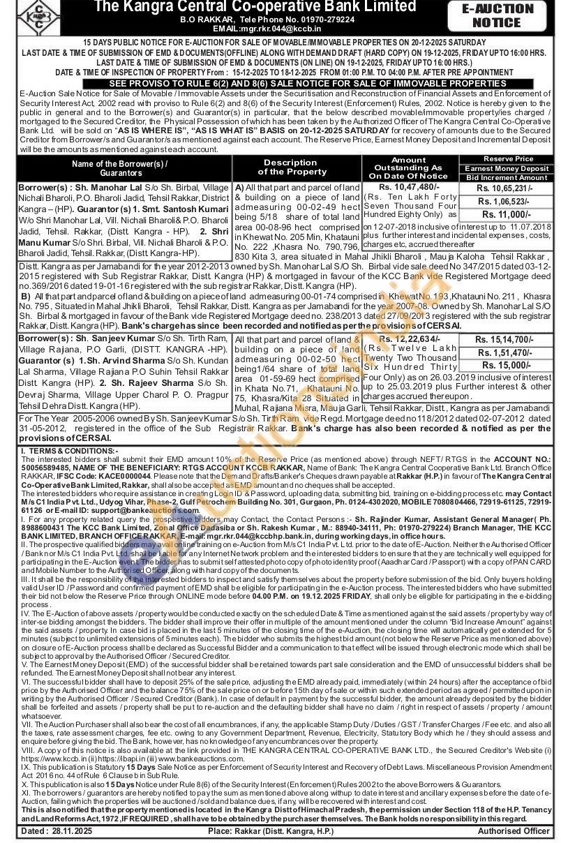 All that part and parcel of land &. building on a piece of land admeasuring 00-02-50 hect Rakkar being1/64 share of total land area 01-59-69 hect comprised in Khata No.71, Khatauni No 75, Khasra/Kita 28 Situated in Muhal, Rajana Misra, Mauja Garli Tehsil Rakkar, Distt, Kangra as per Jamabandi