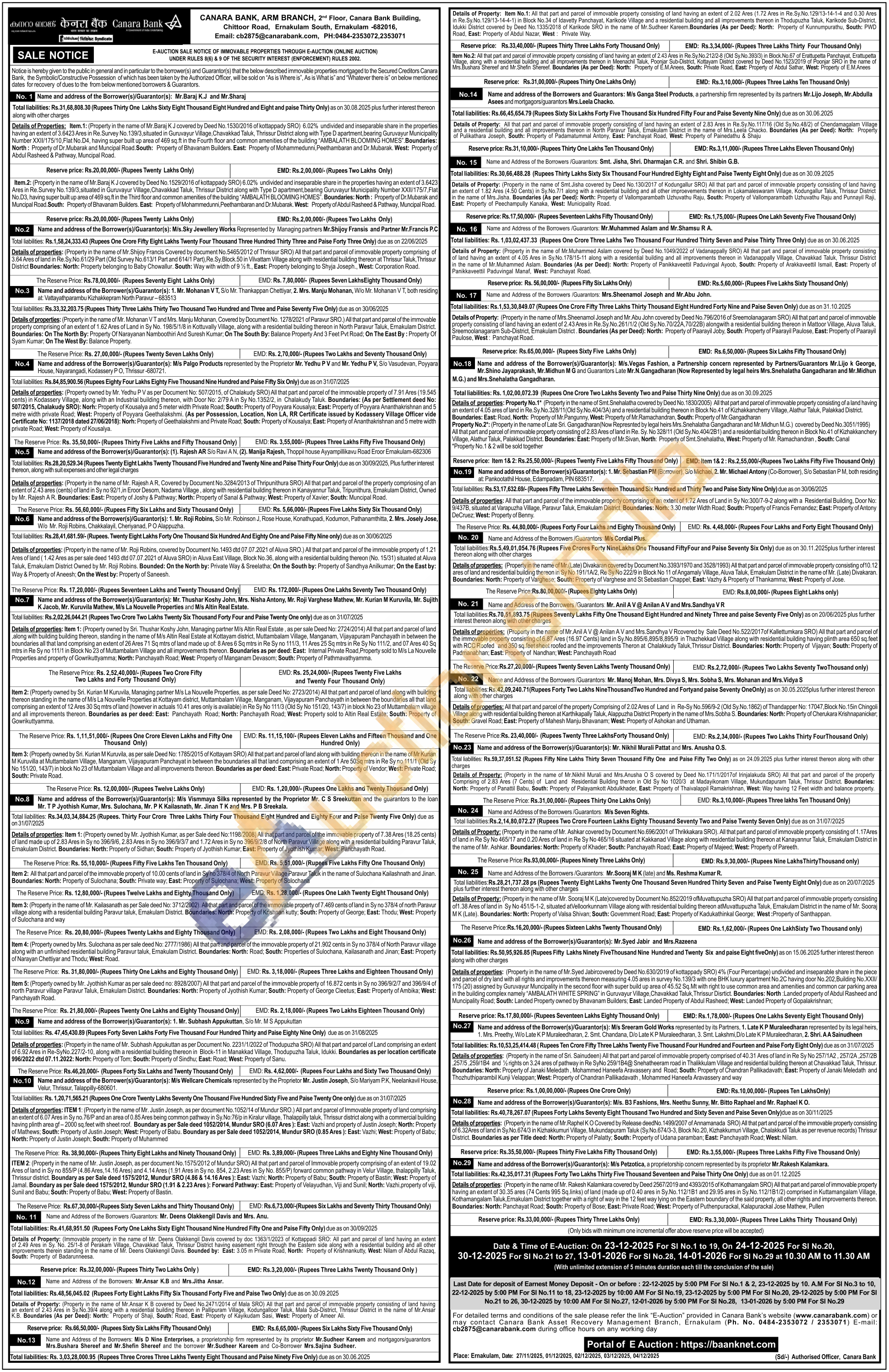 Contact Ph. No. 0484-2353072 / 2353071