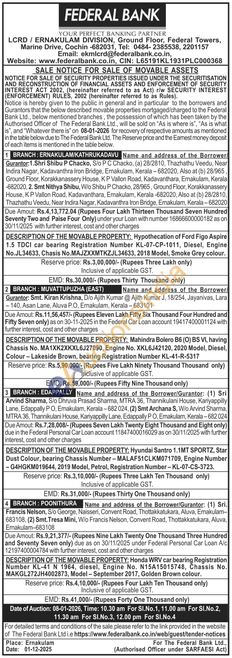 DESCRIPTION OF THE MOVABLE PROPERTY: Mahindra Bolero B6 (O) BS VI, having Chassis No. MA1XK2XKXL6J27090, Engine No. XKL6J42120, 2020 Model, Diesel, Colour-Lakeside Brown, bearing Registration Number KL-41-R-5317