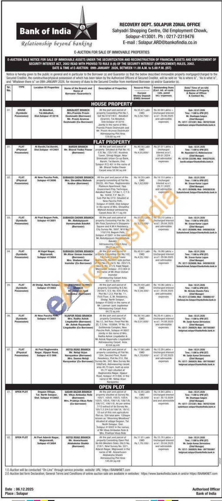 All the part and parcel of the property consisting of Flat No. 26(22), 4th Floor, Raghavendra Platinum Apartment, Opp Government Poly Technique, Akkalkot Road T.P.No-1. C.T.S. No. 10430, F.P. No. 21, Sub-Plot No.57/2, Situated at New Paccha Peth, Solapur-413006, Dist Solapur in the name of Mrs. Shraddha Mahesh Ketkar admeasring Carpet Area 38.11 sq.mtr