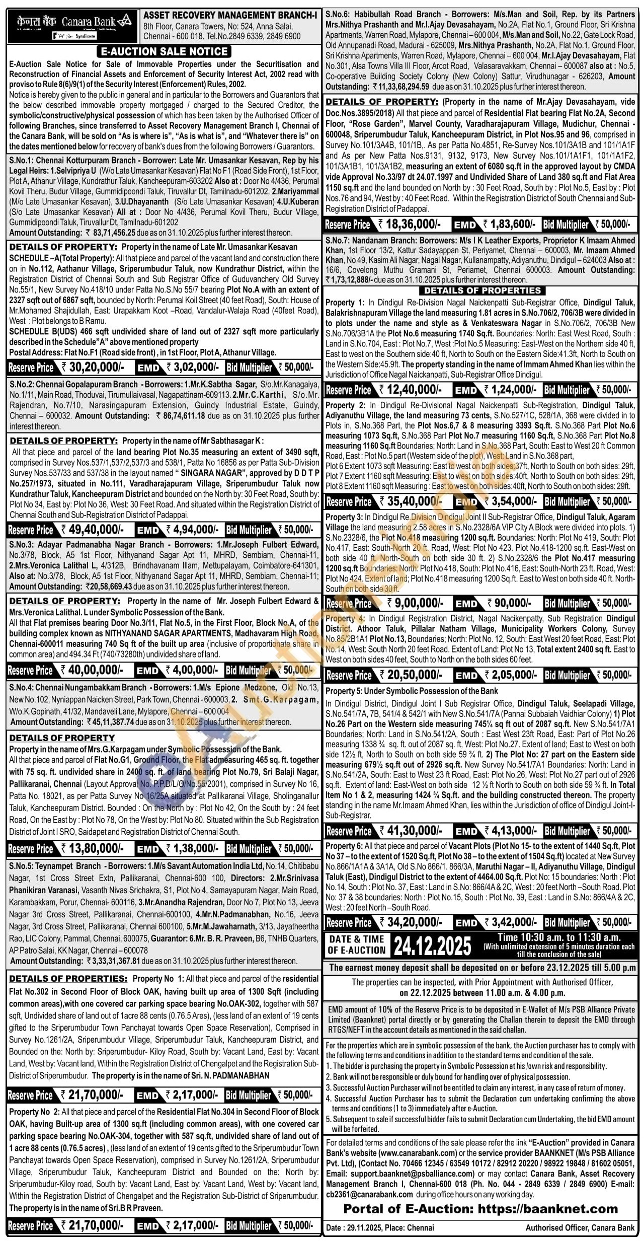 All that Flat premises bearing Door No.3/11, Flat No.5, in the First Floor, Block No.A, of the building complex known as NITHYANAND SAGAR APARTMENTS, Madhavaram High Road, Chennai-600011 measuring 740 Sq ft of the built up area (inclusive of proportionate share in common area) and 494.34 Ft (740/73280th) undivided share of land