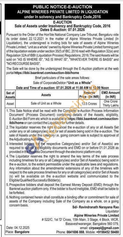 M/s ALPINE WINERIES PRIVATE LIMITED( IN LIQUIDATION)