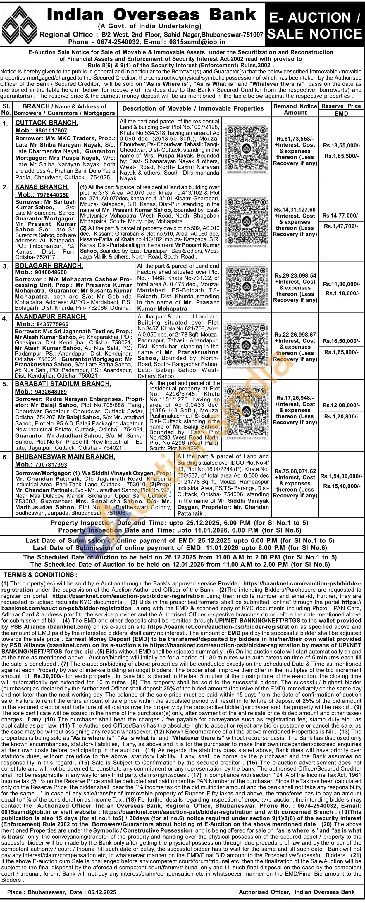 All the part & parcel of Land and Building situated over IDCO Plot No.4/13, Plot No. 1614/2244 (P), Khata No. 350/537, of total area Ac. 0.500 dec or 21778 Sq. ft., Mouza- Ramdaspur Industrial Area, PS/TS- Baranga, Dist-Cuttack, Odisha- 754006, standing in the name of Mr. Siddhi Vinayak Oxygen, Proprietor: Mr. Chandan Pattanaik