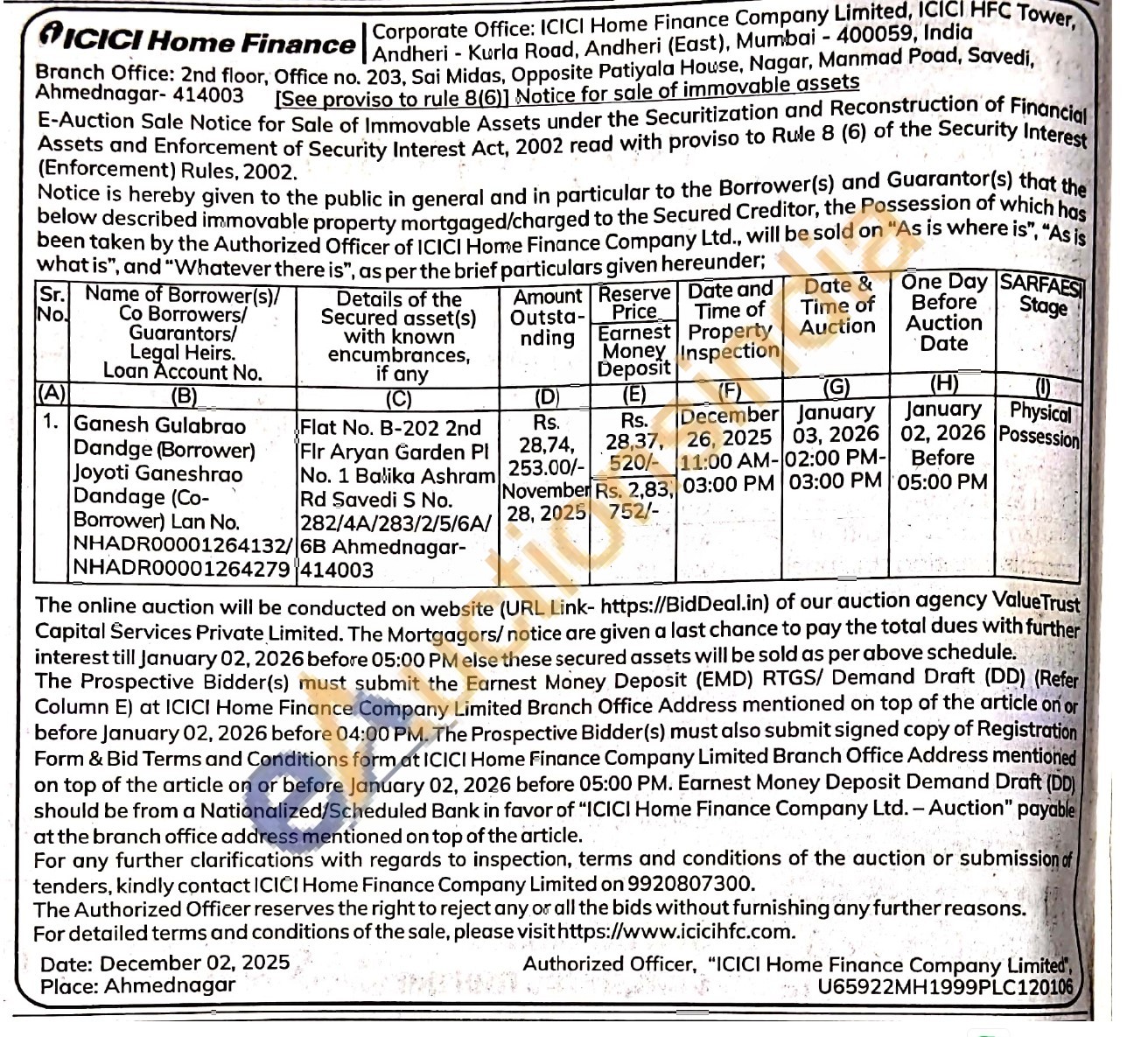 Flat No. B-202 2nd Flr Aryan Garden Pl No. 1 Balika Ashram Rd Savedi S No. 282/4A/283/2/5/6A/6B Ahmednagar-414003