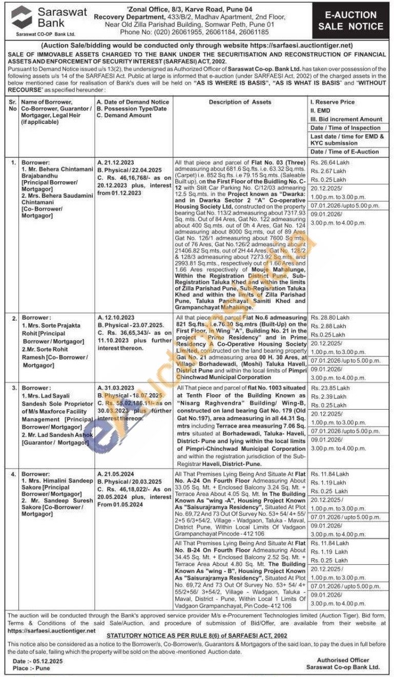 All That Premises Lying Being And Situate At Flat No. B-24 On Fourth Floor Admeasuring About 34.45 Sq. Mt. + Enclosed Balcony 2.52 Sq. Mt. + Terrace Area About 4.80 Sq. Mt. The Building Known As "wing - B", Housing Project Known As "Saisurajramya Residency", Situated At Plot No. 69,72 And 73 Out Of Survey No. 53+54/4+ 55/2+56/3+54/2, Village Wadgaon, Taluka Maval, District Pune, Within Local 1 Limits Of Vadgaon Grampanchayat, Pin Code-412 106