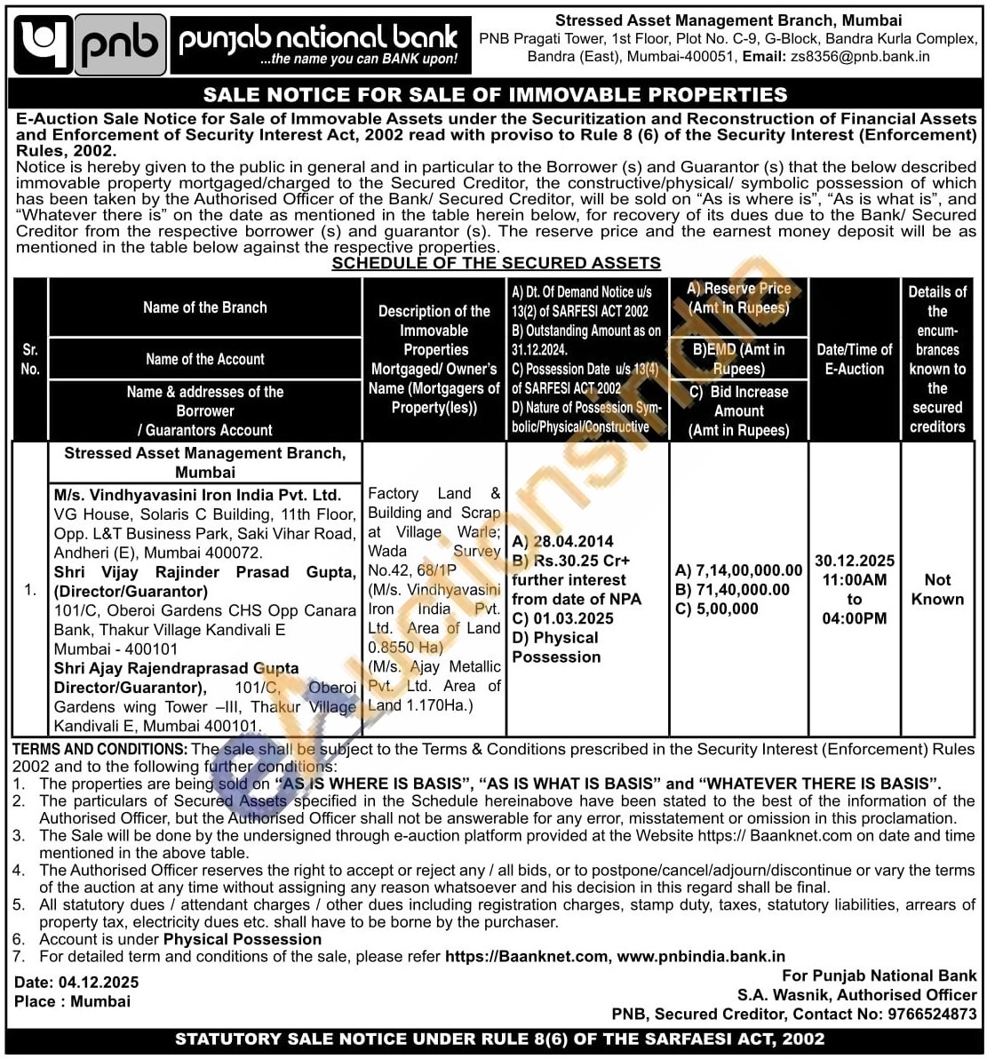 Factory Land & Building and Scrap at Village Warle; Wada Survey No.42, 68/1P (M/s. Vindhyavasini Iron India Pvt. Ltd. Area of Land 0.8550 Ha)