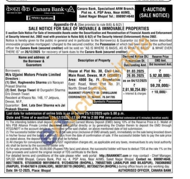 House at Plot No. 30, Civil Line, Main Road, Dewas, M.P. (455001) Area: 4800 Sq. Ft. Boundaries East: Road, West: Plot No. 31 North: Street South: Road BAANKNET PROPERTY ID: CNRBUJJAINI COORDINATES: 22.064065, 76.041705