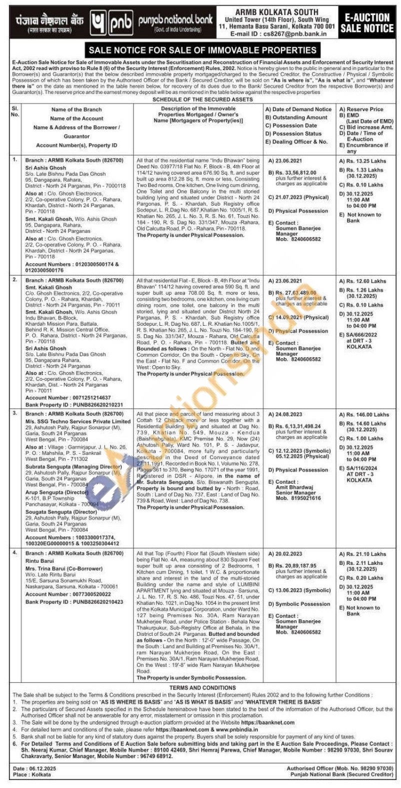 All that piece and parcel of land measuring about 3 Cottah 12 Chittack more or less together with a Residential Building lying and situated at Dag No. 739, Khatian No. 549. Mouze Kendua (Baishnabghata), KMC Premise No. 29, Now (24) Ashutosh Pally, Ward No. 101, P. S. Jadavpur, Kolkata 700084, more fully and particularly described in the Deed of Conveyance dated 27.11.1991, Recorded in Book No. I, Volume No. 278, Pages 361 to 370, Being No. 17071 of the year 1991,Registered in DSR Alipore, in the name of Mr. Subrata Sengupta, S/o. Biswanath Sengupta. Property is bound and butted by North Road, South: Land of Dag No. 737. East: Land of Dag No. 739 & Road, West: Land of Dag No. 738
