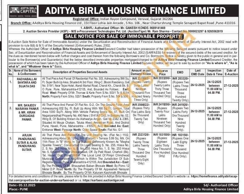 All That Piece And Parcal Of Residential Flat No. 303, Admeasuring 598 Sq. FL Super Built-Up Area, Situated At 3rd Floor, Wing-C, Bloom Residency, Gat No. 519/1, Near Tejas Hotel, Alandi Markal Road, Charolli Kh., Chardli Bk. B. O Pune, Pune, Maharashtra-412105, And, Bounded As Follows: East: Road West: Property Of Mr. Thorvae & Karie From S.No. 503/1 Το & 503/4 North: Property From S.No. 520/1 South: Property From S.No. 504 & 506