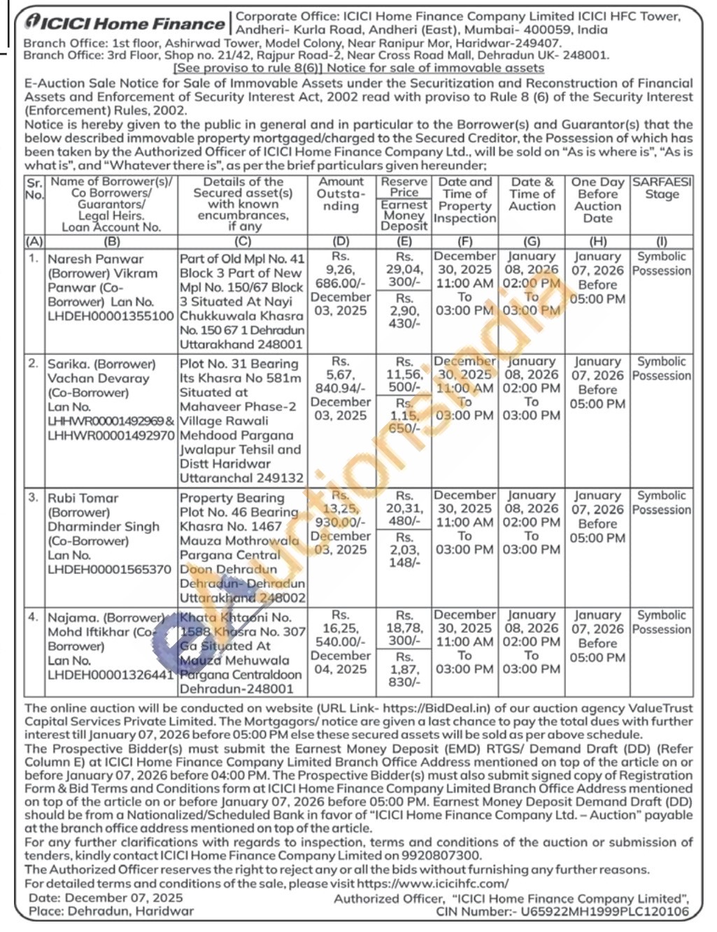 4) Khata Khtaoni No. 1588 Khasra No. 307 Ga Situated At Mauza Mehuwala Pargana Centraldoon Dehradun-248001