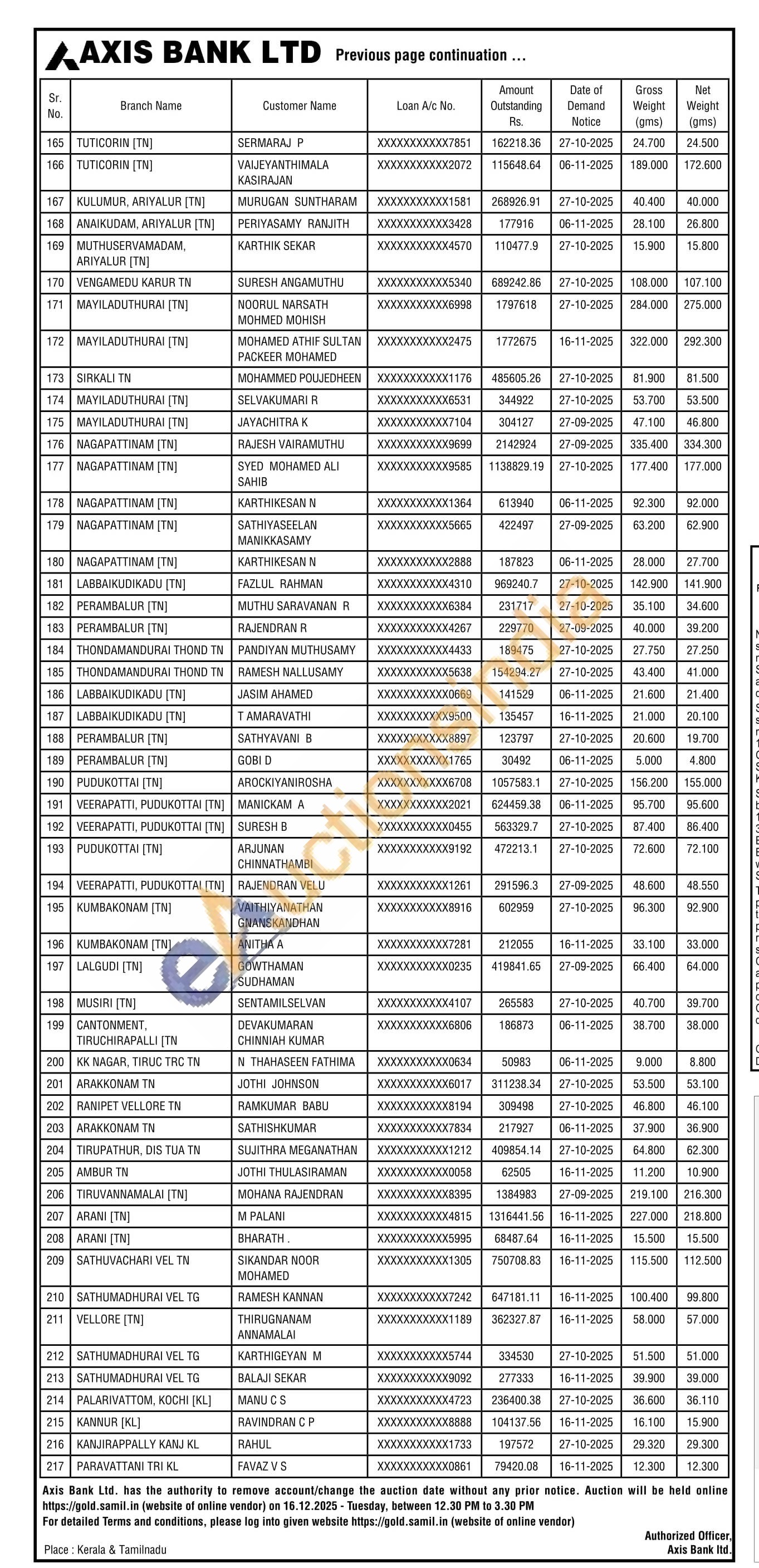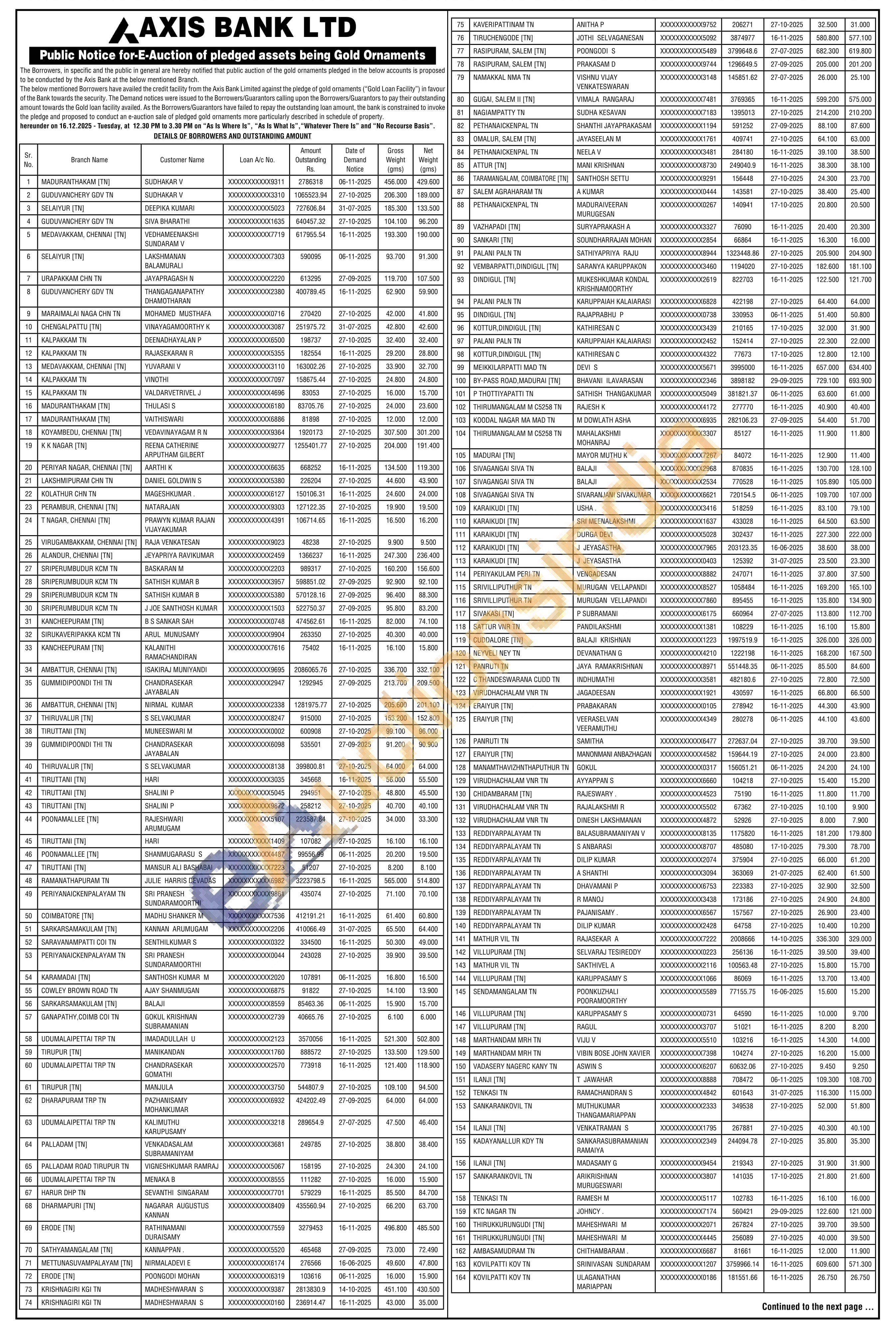 Axis Bank Gold Auctions Auction in Chengalpattu