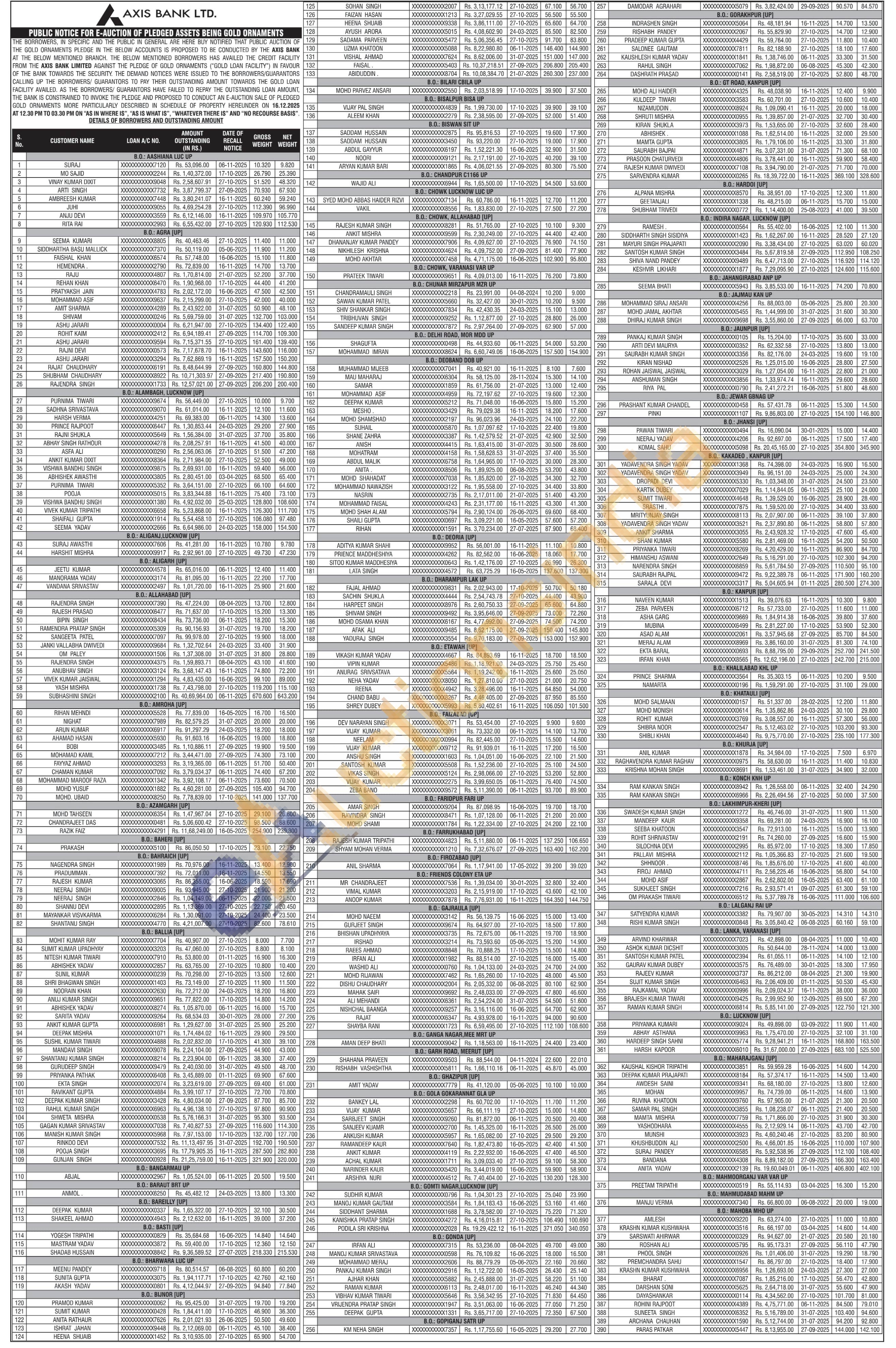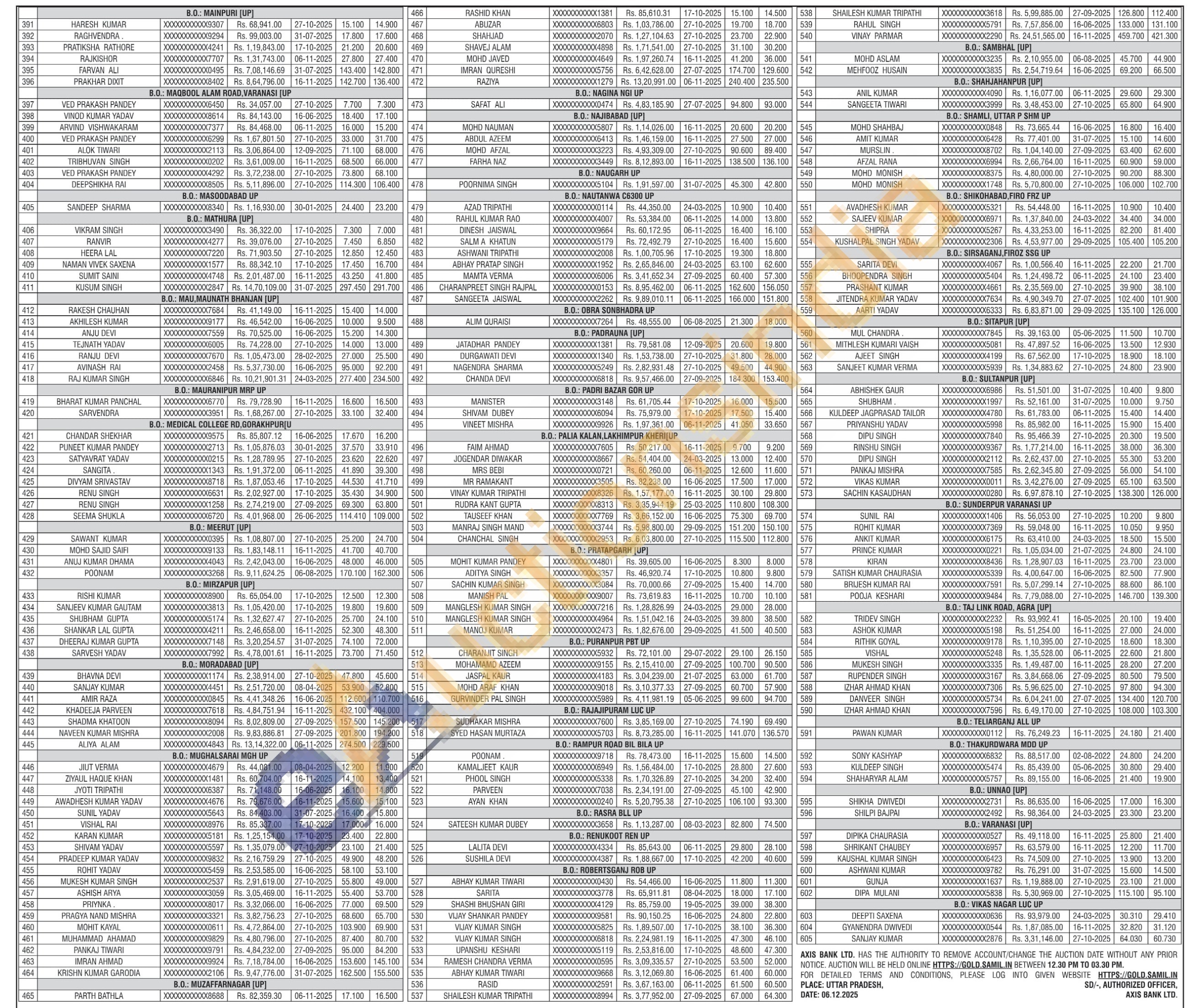 Axis Bank Gold Auctions Auction in Agra