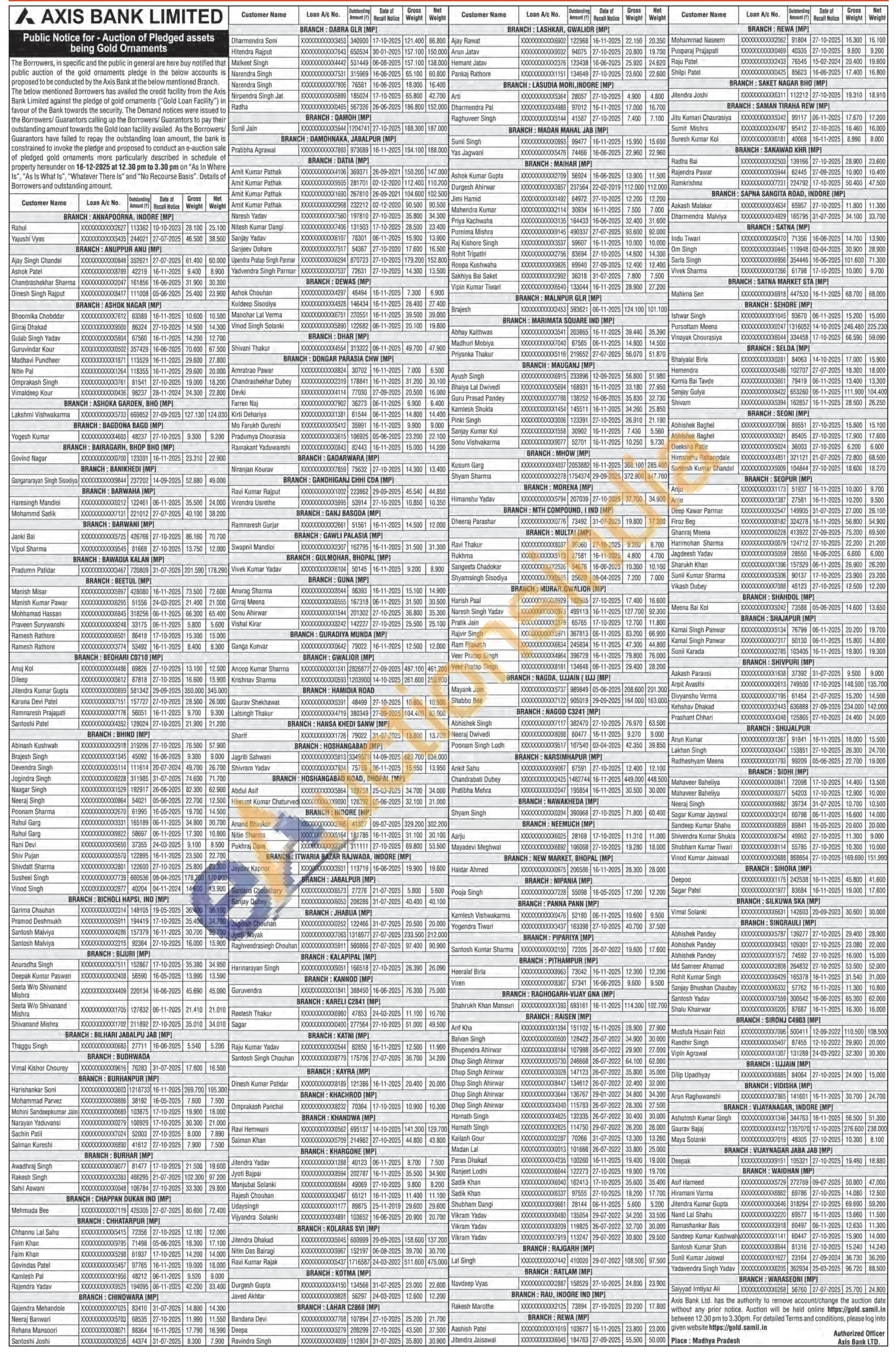Axis Bank Gold Auctions Auction in Jabalpur