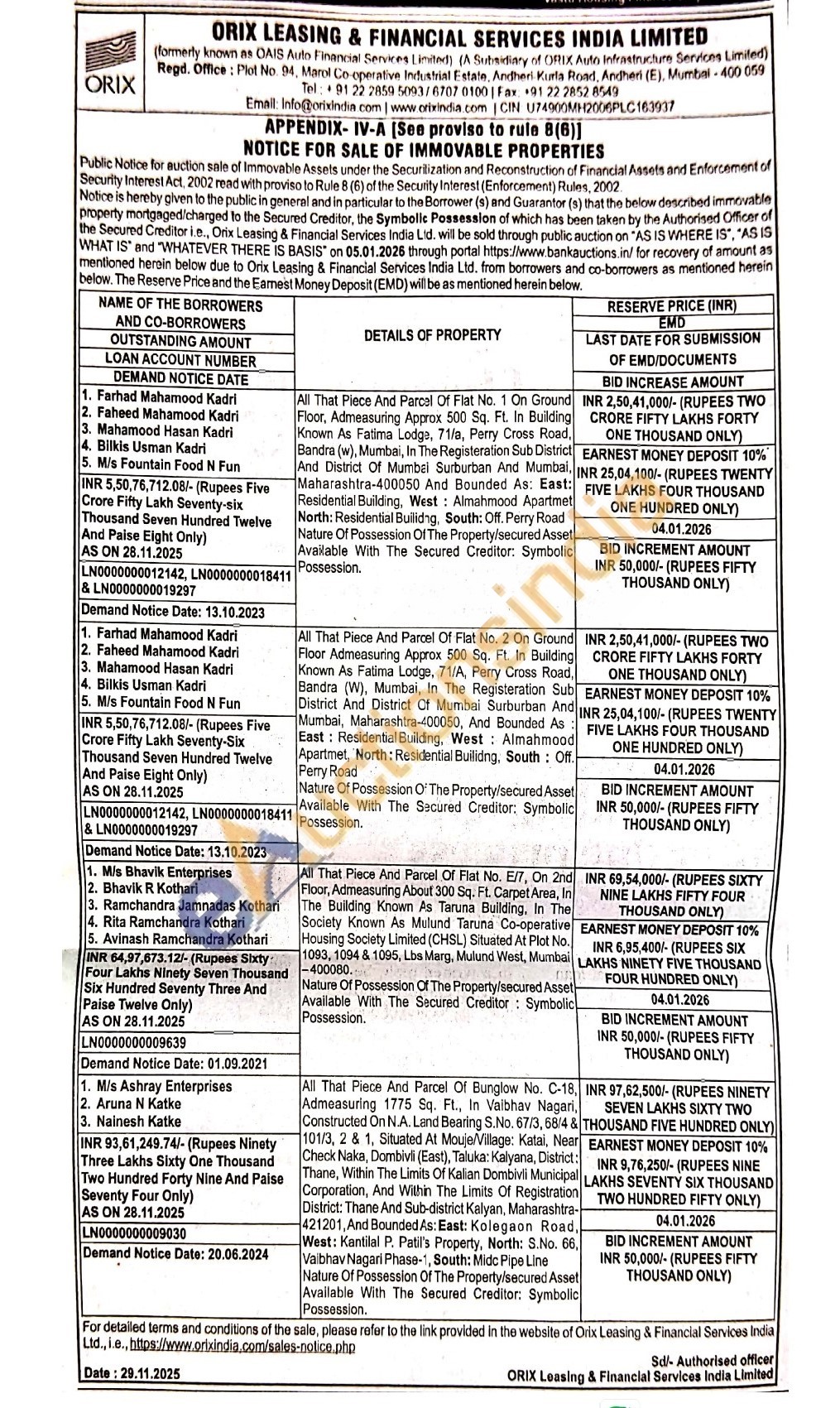All That Piece And Parcel Of Flat No. 1 On Ground Floor, Admeasuring Approx 500 Sq. Ft. In Building Known As Fatima Lodge, 71/a, Perry Cross Road, Bandra (w), Mumbai, In The Registeration Sub District And District Of Mumbai Surburban And Mumbai, Maharashtra-400050 And Bounded As: East: Residential Building, West: Almahmood Apartmet North: Residential Builidng, South: Off. Perry Road Nature Of Possession Of The Property/secured Asset Available With The Secured Creditor: Symbolic Possession.
