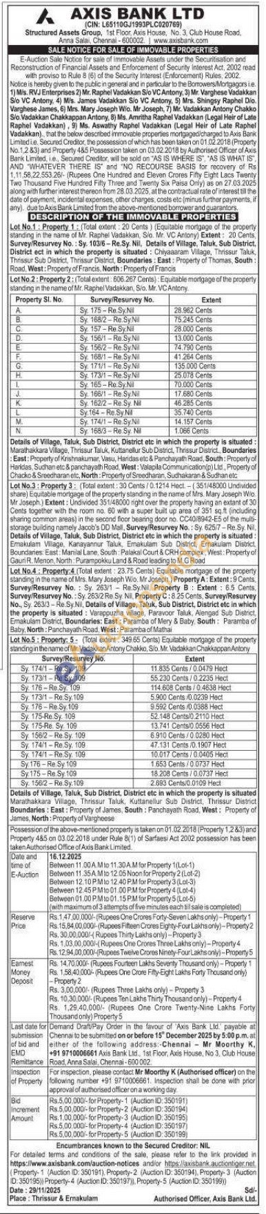 Lot No.3: Property 3: (Total extent: 30 Cents/0.1214 Hect-(351/48000 Undivided share) Equitable mortgage of the property standing in the name of Mrs. Mary Joseph Wio Mr Joseph.) Extent: Undivided 351/48000 right over the property having an extant of 30 Cents together with the room no. 60 with a super built up area of 351 sq.ft. (including sharing common areas) in the second floor bearning door no. CC40/8942-E5 of the multi-storage building namely Jacob's DD Mall, Survey/Resurvey No.: Sy. 625/7-Re.Sy. Nil, Details of Village, Taluk, Sub District, District etc in which the property is situated: Emakulam Village, Kanayannur Taluk, Ernakulam Sub District, Ernakulam District Boundaries: East: Manilal Lane, South: Palakal Court & CRH complex, West: Property of Gauri R. Menon, North: Purampokku Land & Road leading to M.G Road
