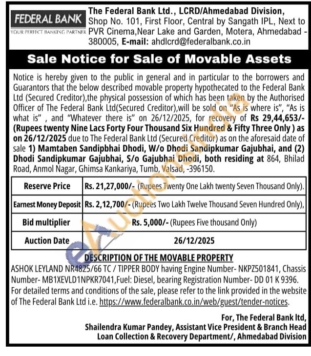 • Auction Start Date :  26-12-2025 10:00 AM