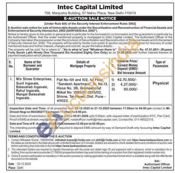Flat No-101 and 102, 1st Floor, "Sandesh Apartment" Sr. No.13, Hissa No. 3B, Grampanchyt Milkat No. 1595/01, 1595/02, Shivne, Tal-Haveli, Dist. Pune -411023.