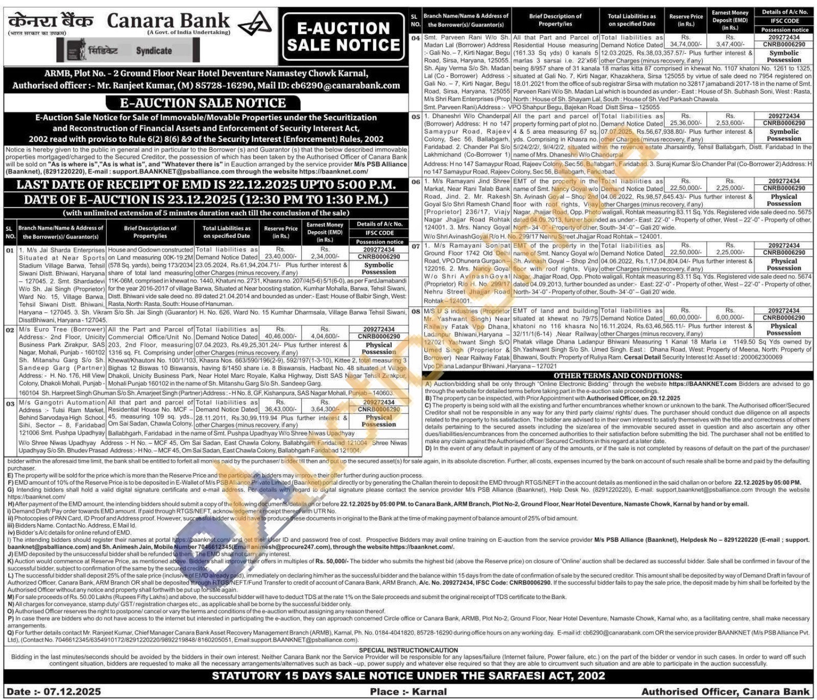 All that Part and parcel of Residential House measuring (161.33 Sq yds) 0 kanals . marlas 3 sarsai i.e. 22'x66 being - situated Parveen North:8/957 share of 31 kanala 18 marlas kitta 87 comprised in khewat No. 1107 khatoni No. 1261 to 1325, at Gali No. 7, Kirti Nagar, Khazakhera, Sirsa 125055 by virtue of sale deed no 7954 registered on 18.01.2021 from the office of sub registrar Sirsa with mutation no 32817 jamabandi 2017-18 in the name of Smt. Rani W/o Sh. Madan Lal which is bounded as under:- East: House of Sh. Subhash Soni, West: Rasta, House of Sh. Shayam Lal, South: House of Sh. Ved Parkash Chawala.