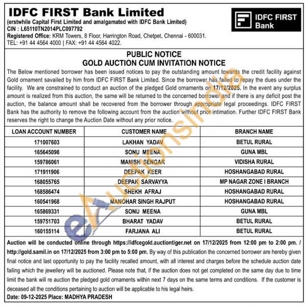 IDFC First Bank Ltd Gold Auctions Auction in Betul