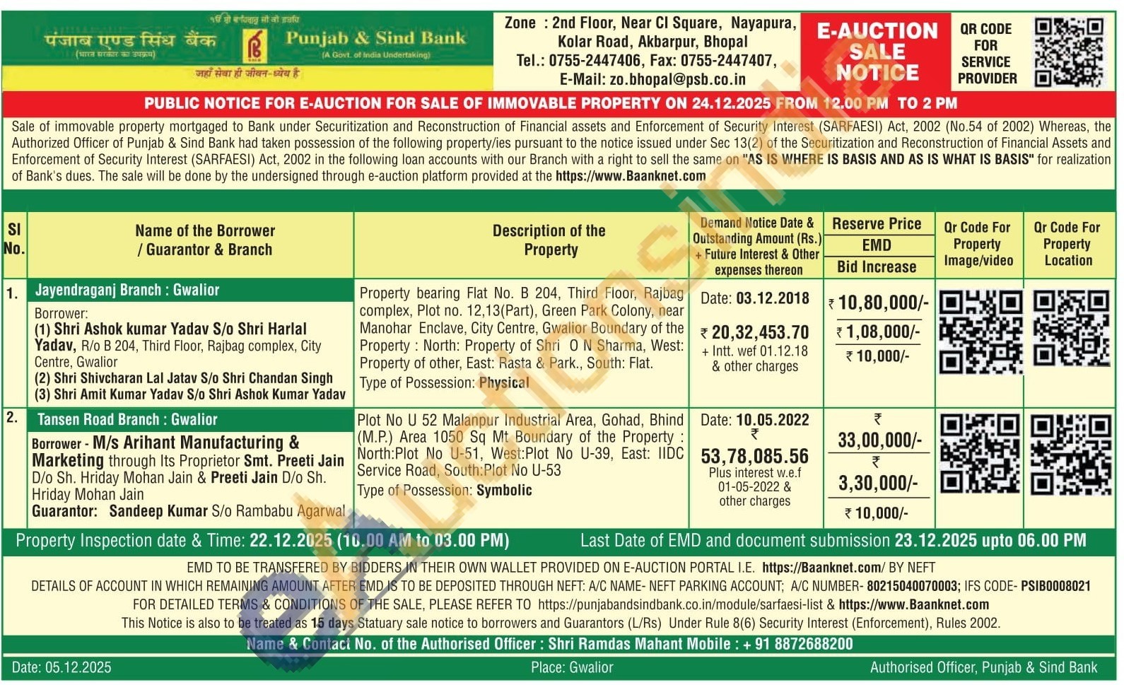 Plot No U 52 Malanpur Industrial Area, Gohad, Bhind (M.P.) Area 1050 Sq Mt Boundary of the Property: North:Plot No U-51, West:Plot No U-39, East: IIDC Service Road, South:Plot No U-53 Type of Possession: Symbolic