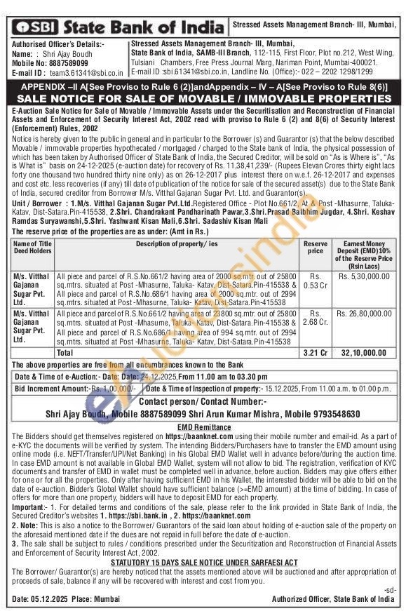 All piece and parcel of R.S.No.661/2 having area of 23800 sq.mtr. out of 25800 sq.mtrs. situated at Post-Mhasume, Taluka- Katav, Dist-Satara. Pin-415538 & All piece and parcel of R.S.No.686/1 having area of 994 sq.mtr. out of 2994 sq.mtrs. situated at Post -Mhasurne, Taluka Katav, Dist-Satara. Pin-415538