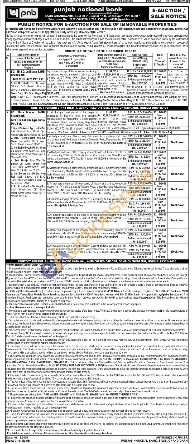 Al that part and parcel of the property of factory land and superstructure measuring 17K-18 M situated at Talwandi Road, Village Ramdittawala, Mansa bearing RTD No.3735 dated 29.10.1998, 3755 dated 29.10.1998 and 5408 dated 02.02.1999 in the name of Sh. Sham Lal S/o Sh. Hem Raj