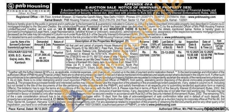 All that part and parcel of property House Measuring 85 50. Yds New Property ID No.38DL.88C2, Patel Park, Shankar Ganden Gali No.6. Across Railway Line, Bahadurgarh District Jhajar-124507 No. 3756/2610 min (0-11), 68/1331 share of kitta 1 Rakba Tadadi O Comprised in Khewat No. 1476/1476, Khatoni No. 2160, Khasra Bighe 11 Biswe as per tile Deed Vasika No.8599 Dated 15.02.2023 in favour of Kamlesh Wilo Gajraj Jadu Boundaries: East: Street 10 FL Wide (34 Ft. 0 inch), West: Plot (34 Ft. 0 Inch), North Plot Parmeshwar (22 Ft 5 inch) South-Street 10 Ft. Wide (22 Ft. 5 Inch)
