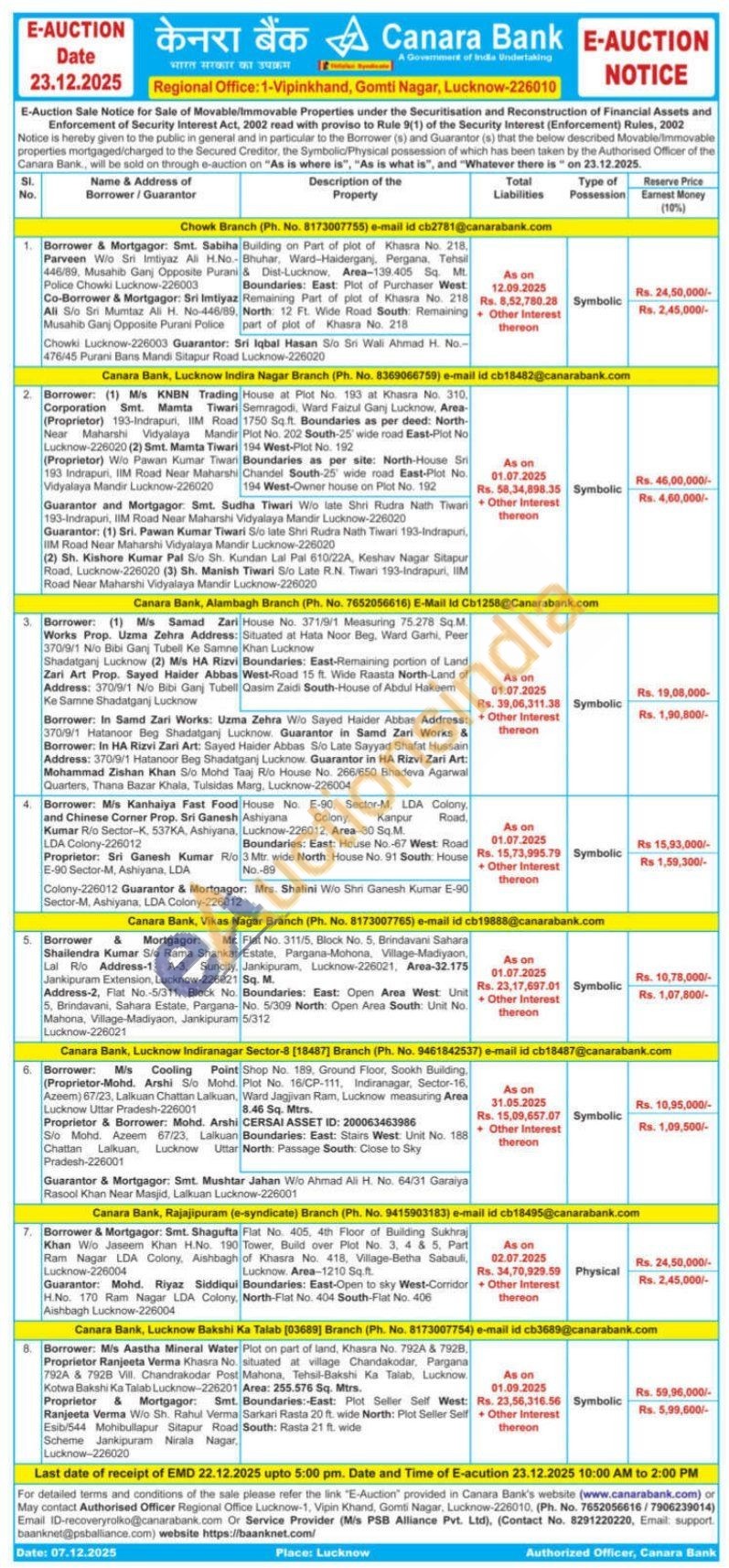 Shop No. 189, Ground Floor, Sookh Building, Plot No. 16/CP-111, Indiranagar, Sector-16, Ward Jagjivan Ram, Lucknow measuring Area 8.46 Sq. Mtrs.CERSAI ASSET ID: 200063463986 Boundaries: East: Stairs West: Unit No. 188 North: Passage South: Close to Sky