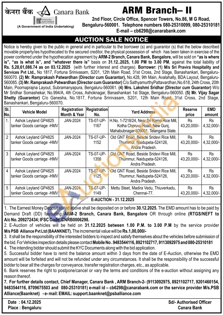 Mobile No : 9483544116 / 8921102717/ 9113092975 / 080-25310181