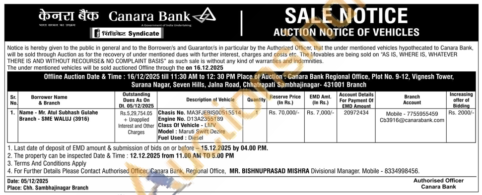 Authorised Officer MR. BISHNUPRASAD MISHRA Mobile No -8334998456 / Branch Mobile No -7755955459