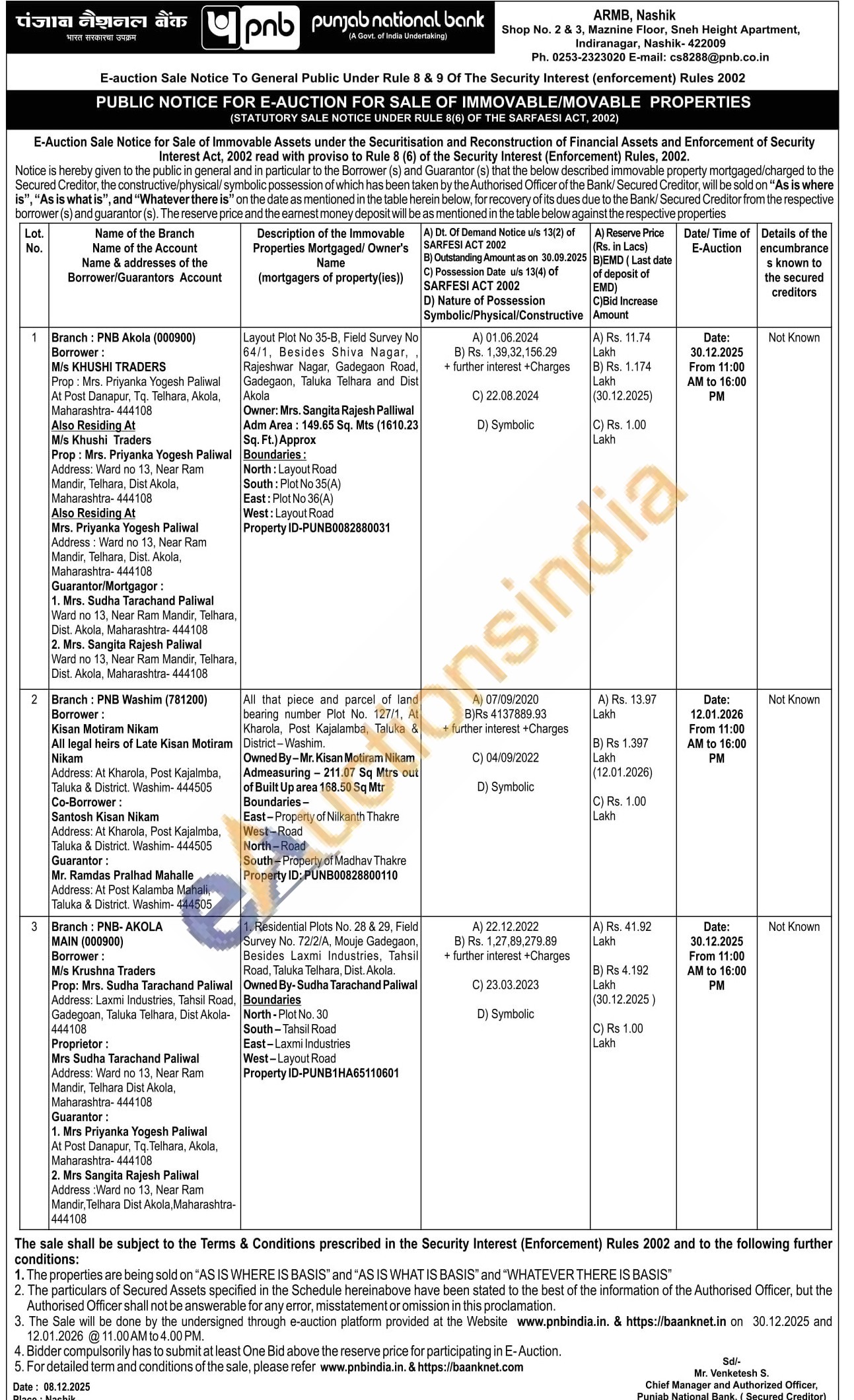 Layout Plot No 35-B, Field Survey No 64/1, Besides Shiva Nagar,. Rajeshwar Nagar, Gadegaon Road, Gadegaon, Taluka Telhara and Dist Akola Owner: Mrs. Sangita Rajesh Palliwal Adm Area: 149.65 Sq. Mts (1610.23 Sq. Ft.) Approx Boundaries: North: Layout Road South: Plot No 35(A) East: Plot No 36(A) West: Layout Road Property ID-PUNB0082880031