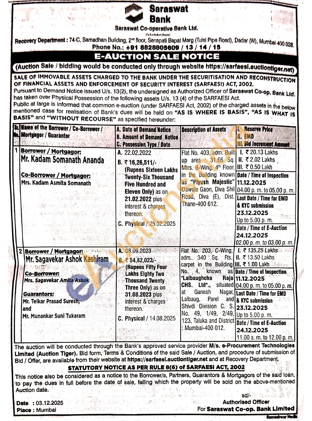 Flat No. 403, adm. Built up area 31.66 Sq. Mtrs. B-Wing, 4th Floor, in the Building known as "Piyush Majestic" Dawale Gaon, Diva Shil Road, Diva (E), Dist. Thane-400 612.