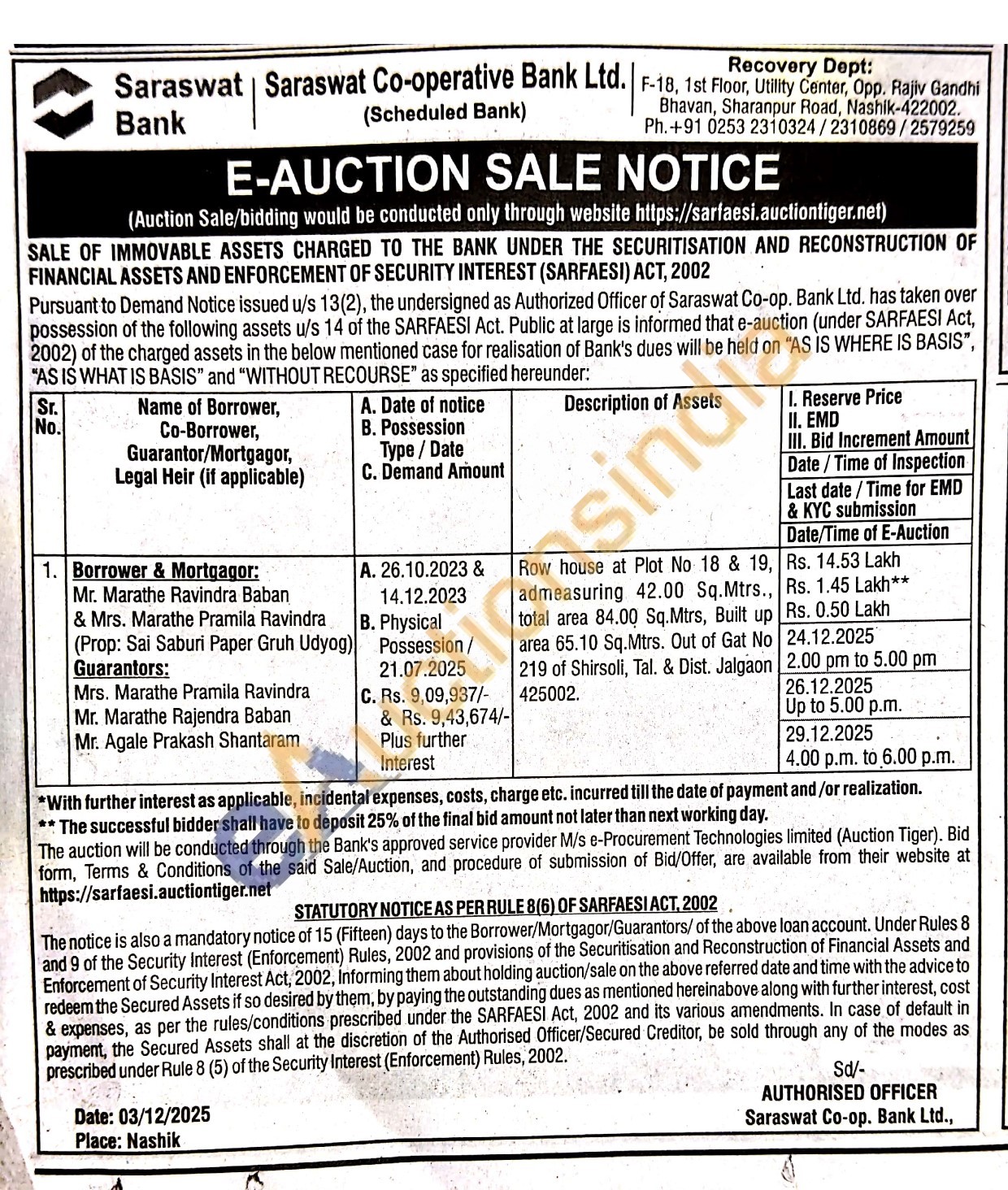 Row house at Plot No 18 & 19, admeasuring 42.00 Sq.Mtrs., total area 84.00 Sq.Mtrs, Built up area 65.10 Sq.Mtrs. Out of Gat No 219 of Shirsoli, Tal. & Dist. Jalgaon 425002