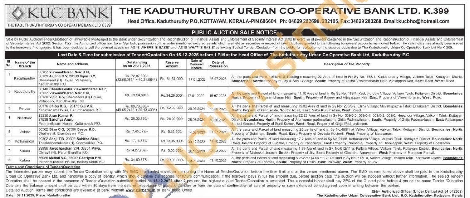 All the parts and Parcel of land measuring 20 cents of land in Sy No.489/1 at Velloor Village, Vaikom Taluk, Kottayam District. Boundaries: North: Property of Sulaiman, South: Road, East: Property of Devasia Kocheril, West: Property of Narayanan