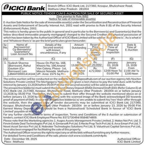 House On Plot No. 168, Khasra No. 190, Anand Van Colony, Phase- 1st, Mauza Navada Mathura-UP-Area: 1575 Sq Ft