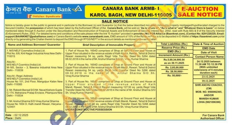 Part of House No. 1654D comprises of Shop at Ground Floor and House at Upper Floor situated in the revenue estate of Kath Mandi, Rewari, Tehsil & District Rewari measuring 54 sq. yards Regd Vide Transfer Deed No 5264 dated. 08.02.2018 in the name of Mr. Anshul Sharma S/O Sh. Vinay Kumar Sharma