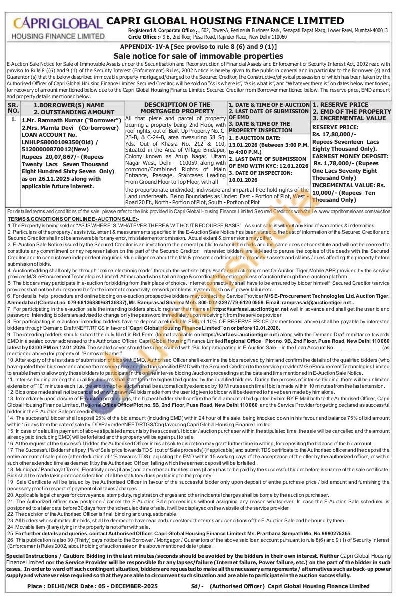 All that piece and parcel of property bearing a property being 2nd Floor with roof rights, out of Built-Up Property No. C-23-B, & C-24-B, area measuring 58 Sq. Yds. Out of Khasra No. 212 & 110, Situated in the Area of Village Bindapur, Colony known as Anup Nagar, Uttam Nagar West, Delhi-110059 along with common/Combined Rights of Main Entrance, Passage, Staircases Leading From Ground Floor