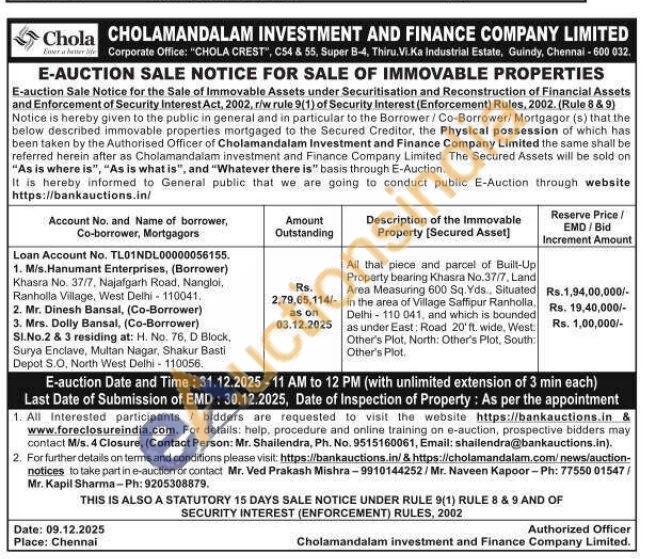 All that piece and parcel of Built-Up Property bearing Khasra No.37/7, Land Area Measuring 600 Sq. Yds.. Situated in the area of Village Saffipur Ranholla, Delhi-110 041, and which is bounded as under East: Road 20' ft. wide, West Other's Plot, North: Other's Plot, South: Other's Plot.