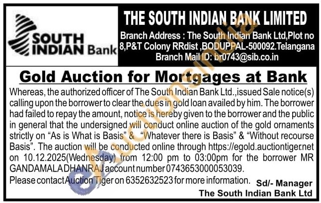 South Indian Bank Gold Auctions Auction in Ranga Reddy