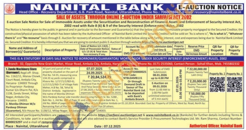 All part and parcel of the property situated on the part of Plot No. 54-55, measuring area 134.33 sq yards comprised in Khasra No. 1//17/1/2/8(0-6), 1//17/1/2/9(0-7) of Village Patti Meher, H.B No. 58, Tehsil & District-Ambala, registered in the name of Monika Dhiman W/o Pardeep Kumar vide transfer deed having Parlekh Sr. No. 5288,Bahi No. 1, Jild No. 887 of Page 31 and additional copy at Bahi No. 1. Jild No. 8844 of pages 67 to 68 in the office of Sub Registrar Ambala on 01.10.2014. Bounded: East by: Property of Others, West by: Road, North by: Remaining Part of Plot No. 54-55, South by: Open Plot Of others.