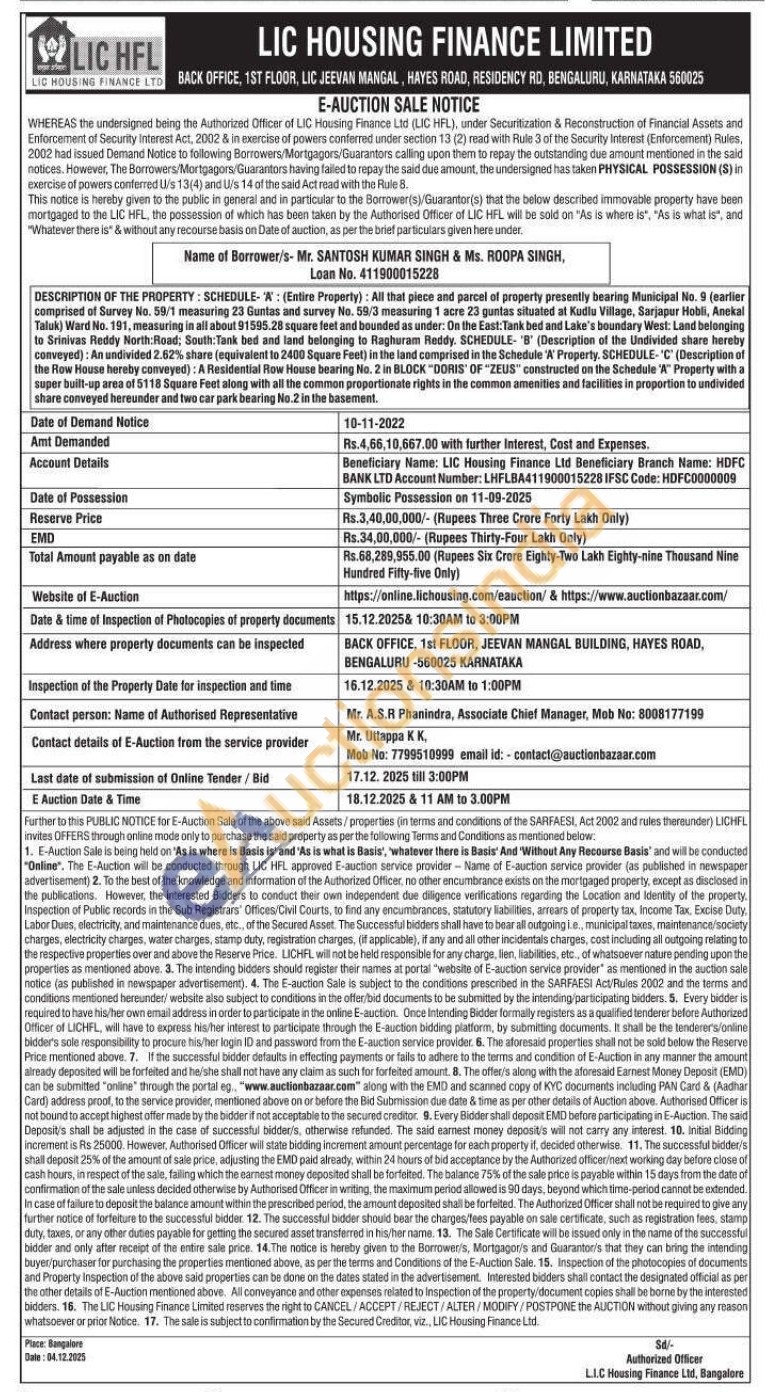 square DESCRIPTION OF THE PROPERTY: SCHEDULE-W: (Entire Property): All that piece and parcel of property presently bearing Municipal No. 9 (earlier comprised of Survey No. 59/1 measuring 23 Guntas and survey No. 59/3 measuring 1 acre 23 guntas situated at Kudlu Village, Sarjaper Hobli, Anekal Taluk) Ward No. 191, measuring in all about 91595.28 square feet and bounded as under: On the East: Tank bed and Lake's boundary West: Land belonging to Srinivas Reddy North Road; South:1 orth Road; South Tank bed and land belonging to Raghuram Reddy. SCHEDULE- B' (Description of the Undivided share hereby conveyed): An undivided 2.62% share (equivalent to 2400 Square Feet) in the land comprised in the Schedule 'W Property, SCHEDULE-'C' (Description of the Row House heraby conveyed): A Residential Row House bearing No. 2 in BLOCK DORIS OF ZEUS" constructed on the Schedule "A" Property with a Property with a super built-up area of 5118 Square Feet along with all the common proportionate rights in the common amenities and facilities in proportion to undivided share conveyed hereunder and two car park bearing No.2 in the basement.